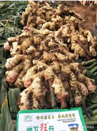 2019年10月24日,我們易生科技售后服務(wù)組在姜戈莊回訪噴施地下狂長大姜的效果。噴施地下狂長的大姜顏色金黃光亮,片型大,姜絲長,多,粗,口感辛辣,姜味濃,姜指頭粗胖,產(chǎn)品高!